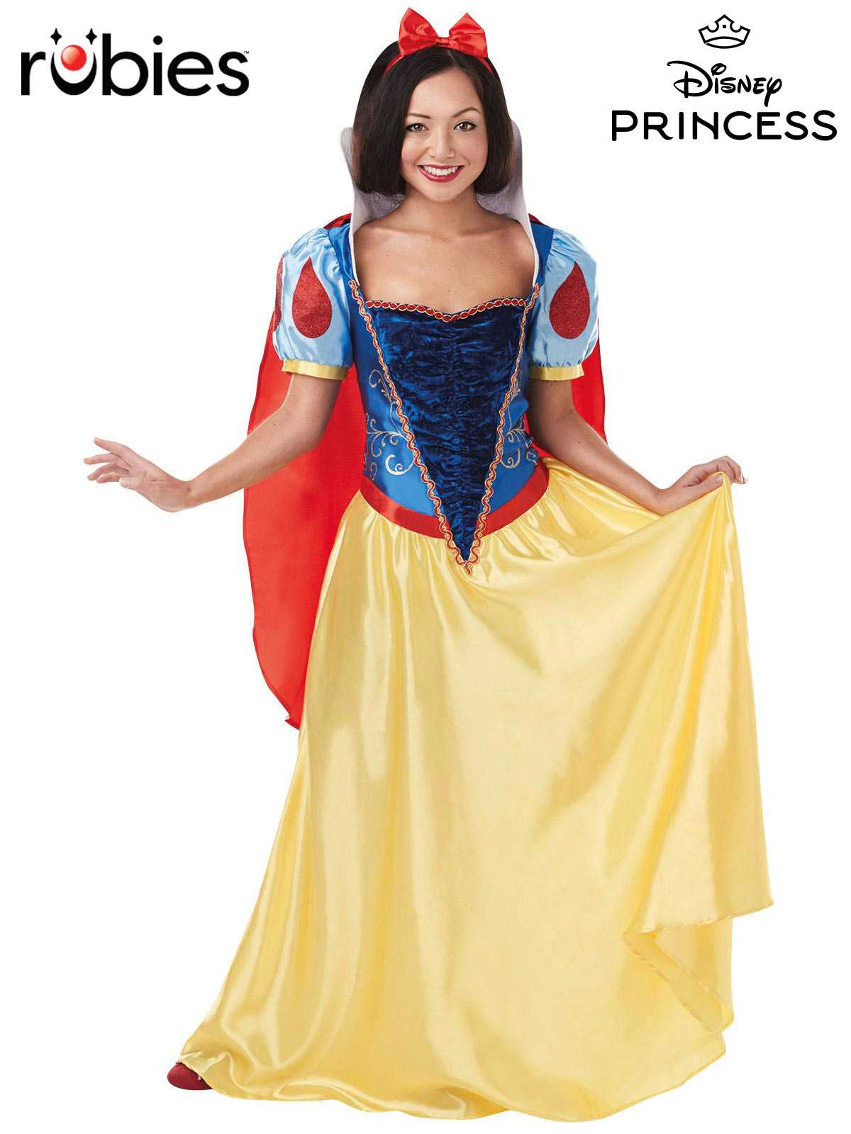 - Detachable red cape & red bow satin headband