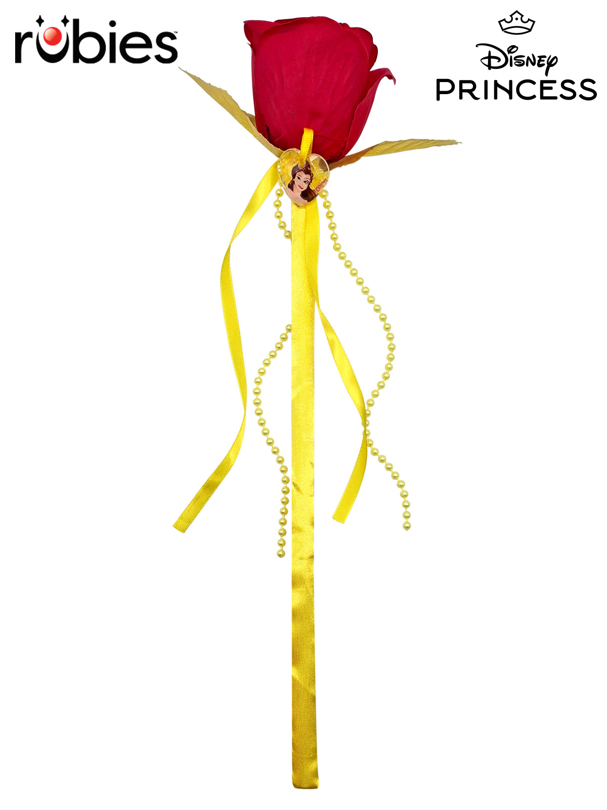 - Belle plastic wand with fabric red rose and shimmery gold at the top