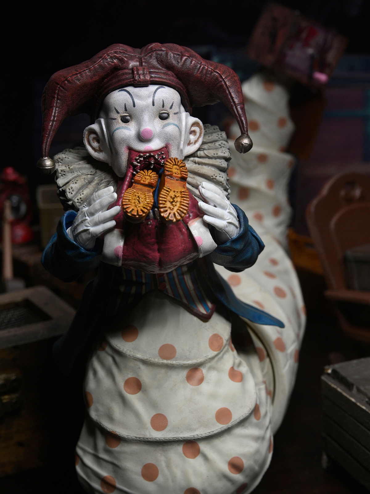 - Krampus Der Klown deluxe action figure standing over 10 inches tall
