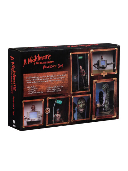 Build amazing scenes from the Nightmare on Elm Street movies with this deluxe accessory set! These incredible pieces are perfectly in scale with NECA’s line of 7″ scale figures and include some truly iconic pieces from the cult classic horror movies. The set comes in closed box packaging featuring artwork created just for this release.