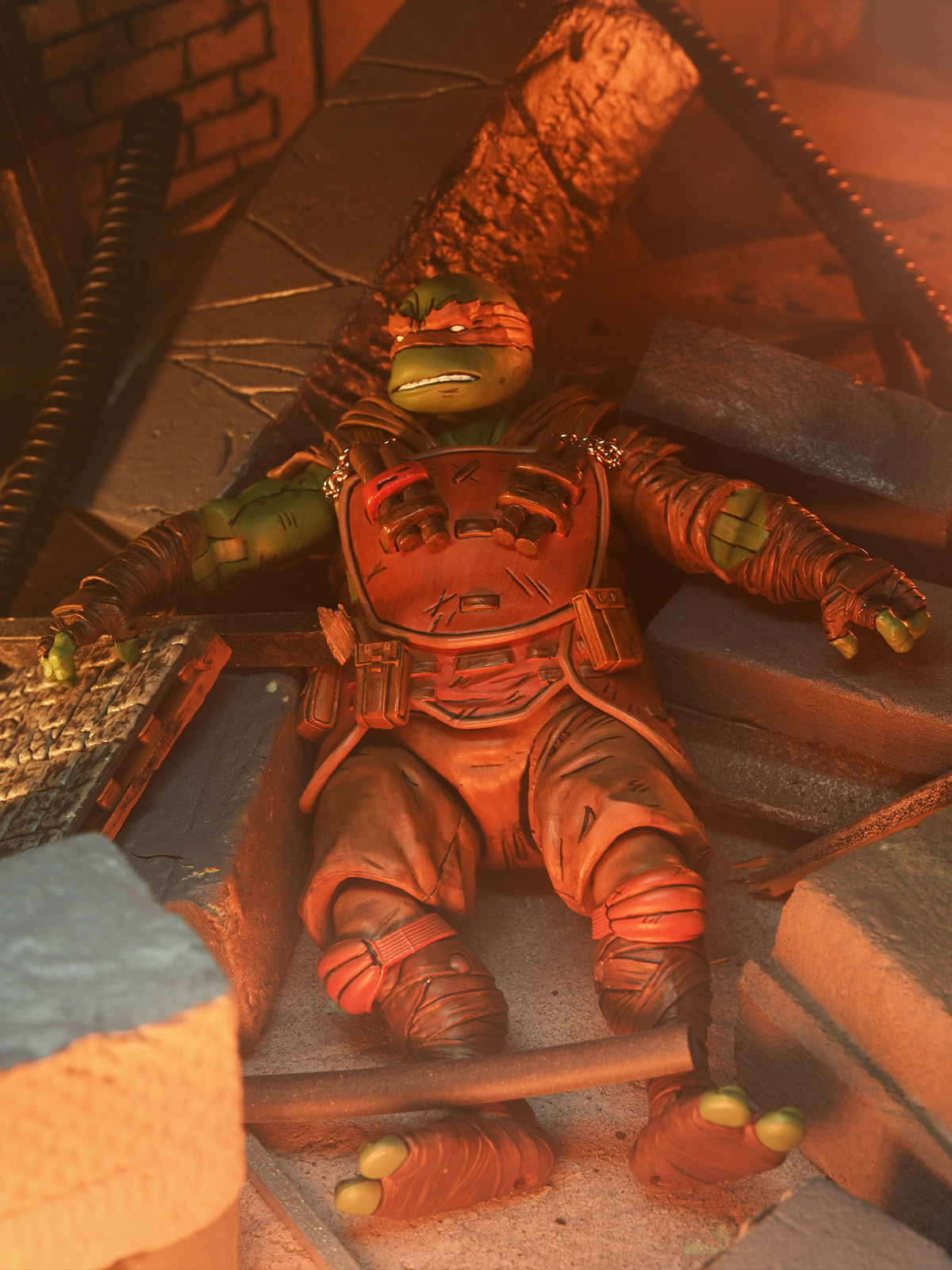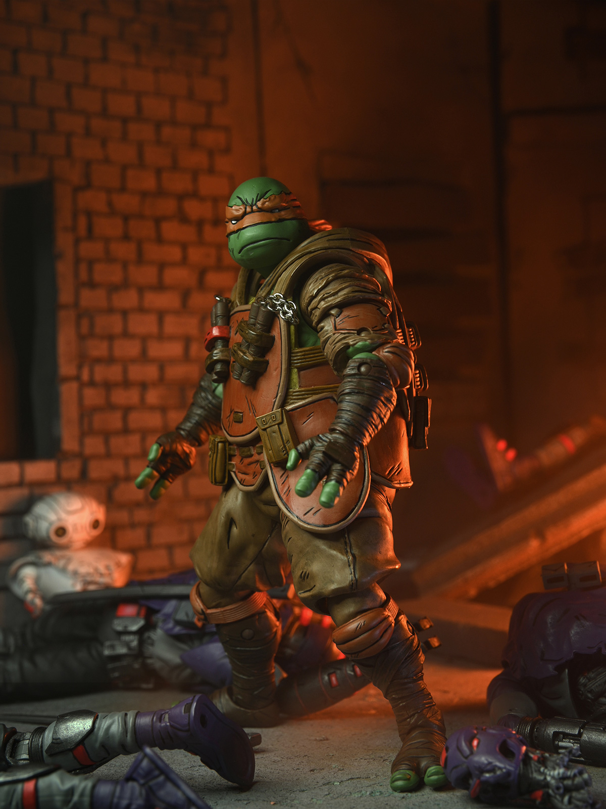 From the Teenage Mutant Ninja Turtles comic book series, The Last Ronin! In a future NYC far different than the one we know today, a lone surviving Turtle goes on a seemingly hopeless mission to obtain justice for his fallen family and friends. Based on issue #3 of the comic, this Michelangelo figure stands in 7-inch scale.
