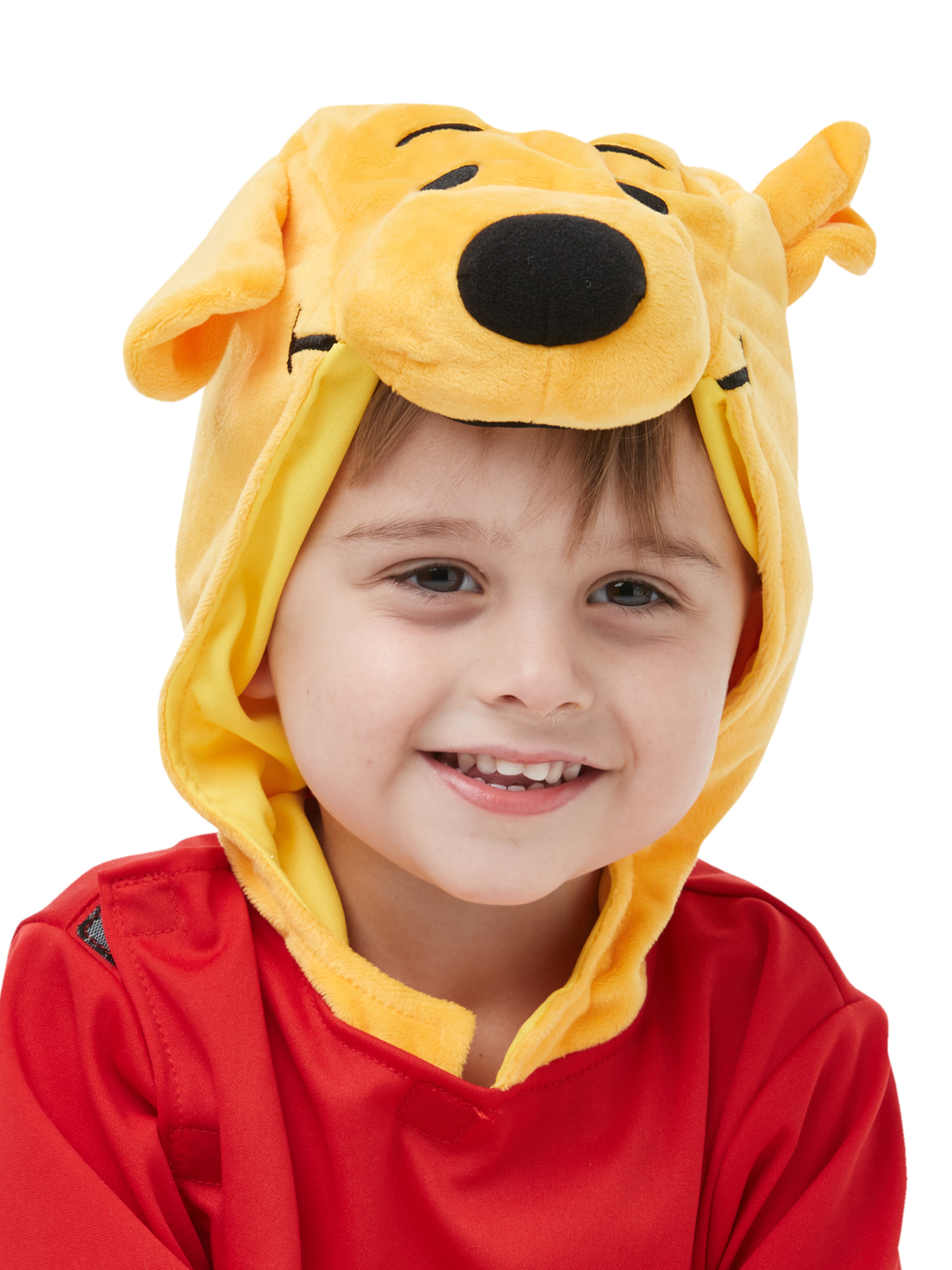 - Jumpsuit has open feet and attached character head with 3D nose and ears, plus cut out face hole for child’s head